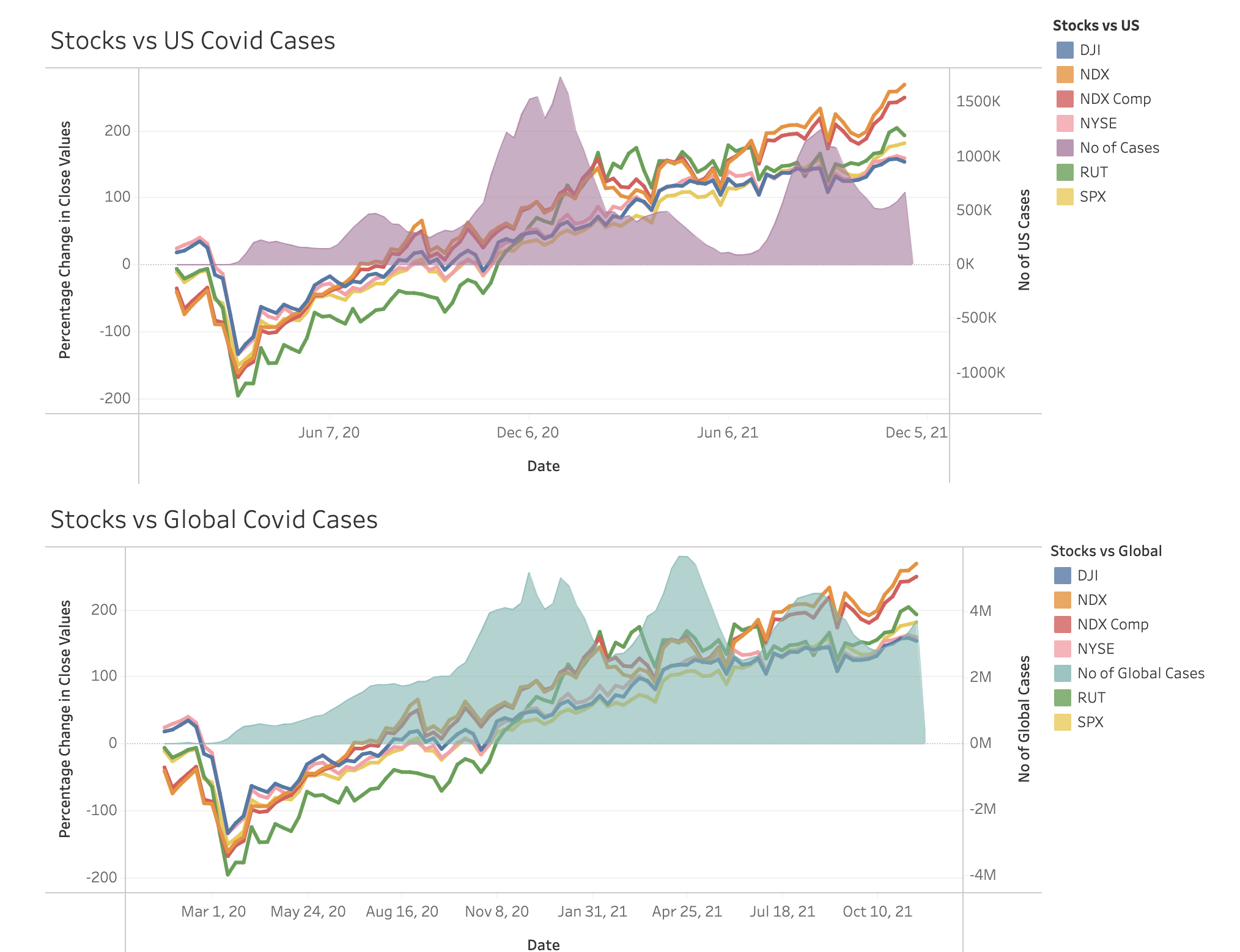 Sample Dashboard for US Stock Market affected by US and Global COVID Cases