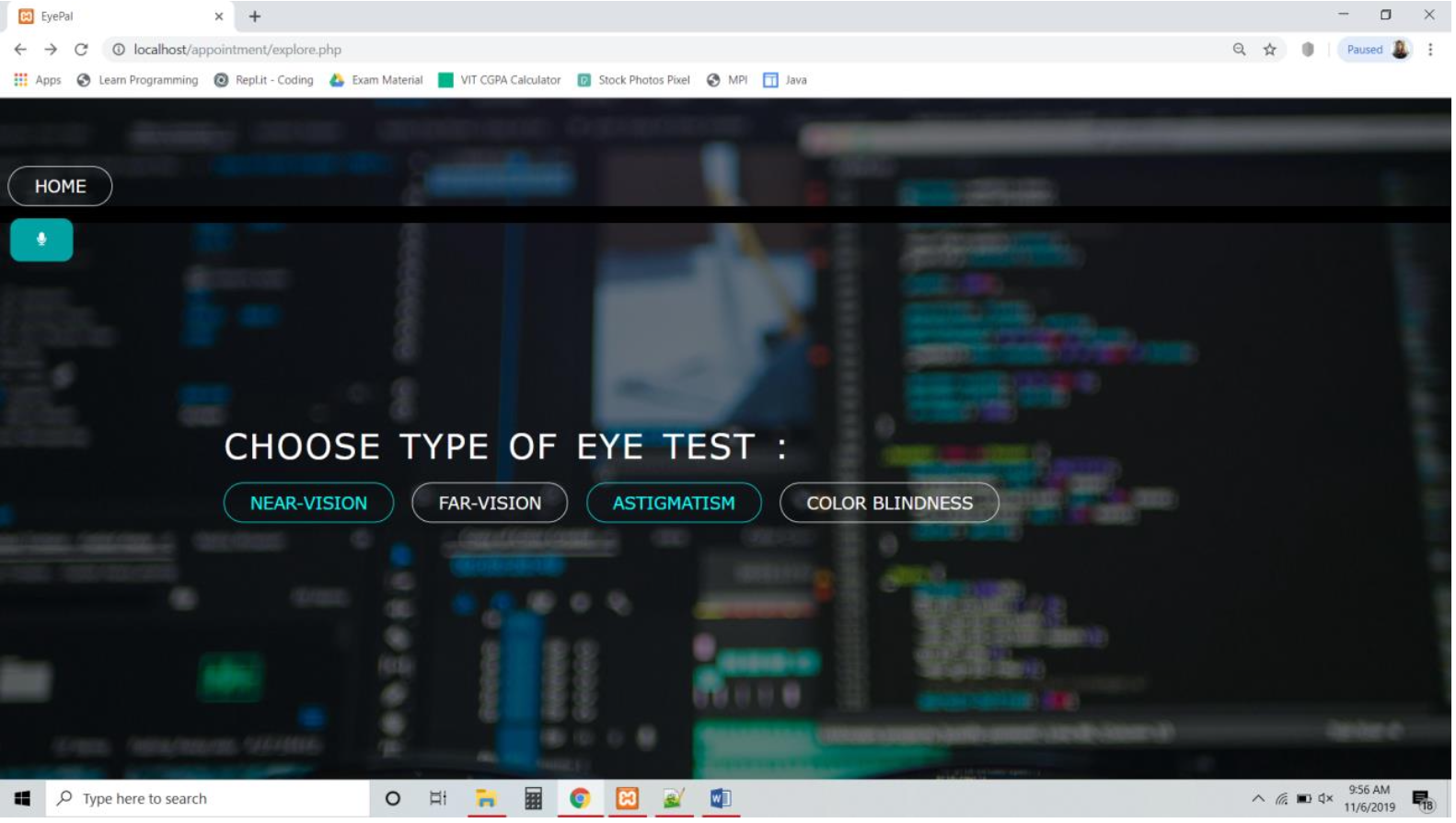 Home Screen Testing Options Sample of an English Far Vision Test